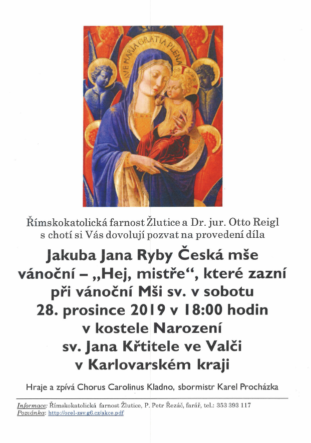 Kostel Narození sv. Jana Křtitele ve Valči v sobotu 28.12.2019 v 18:00 hodin. Hraje a zpívá Chorus Carolinnus Kladno.