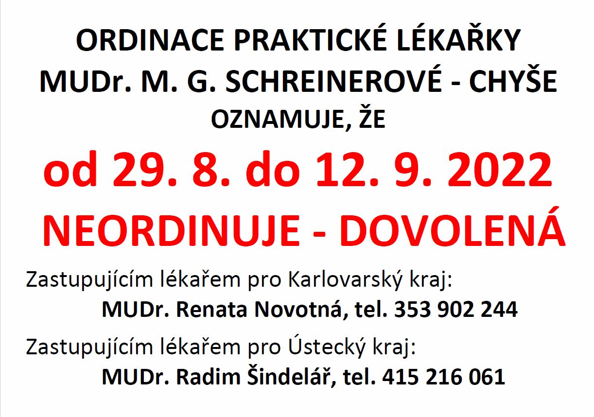 Oznámení - Dovolená MUDr. Schreinerová