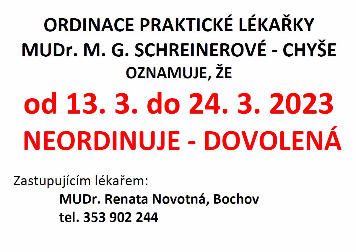 Oznámení - Dovolená MUDr. Schreinerová