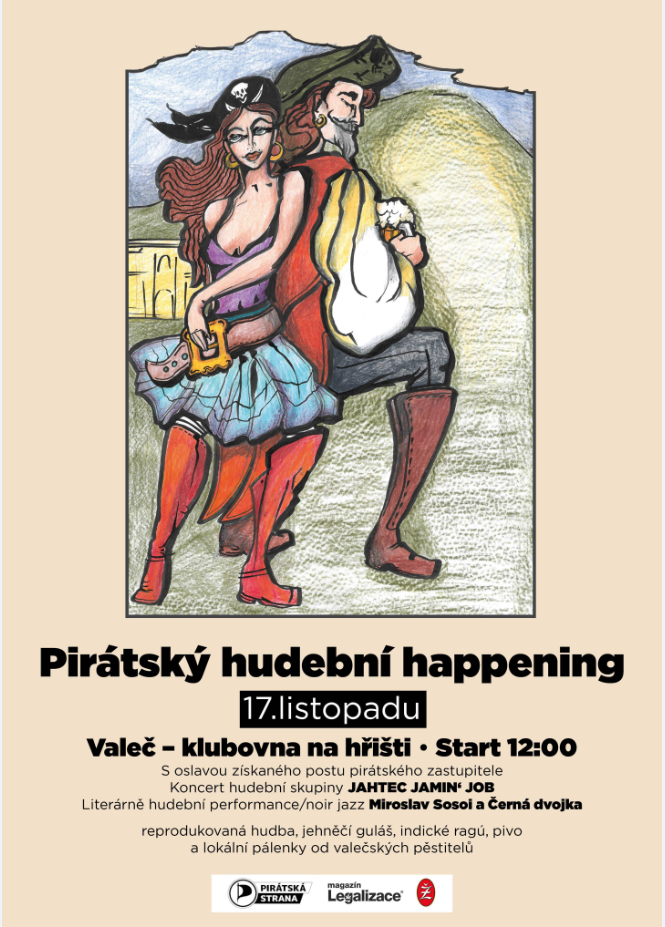 Pirátský hudební happening se koná 17. listopadu od 12:00 hodin v klubovně na hřišti ve Valči.