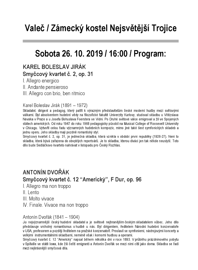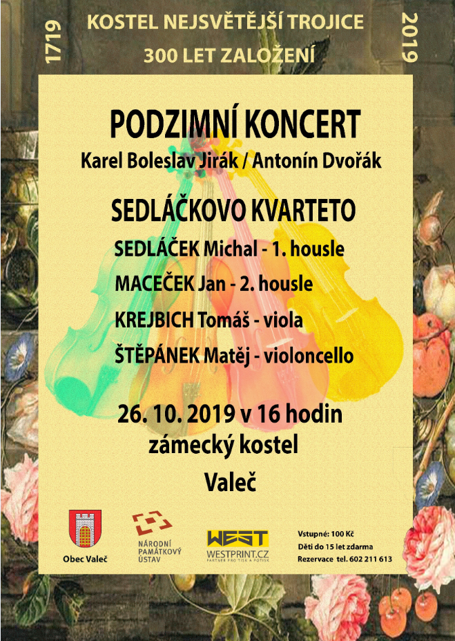 Podzimní koncert se koná v sobotu 26.10.2019 v 16:00 hodin v zámeckém kostele ve Valči.
