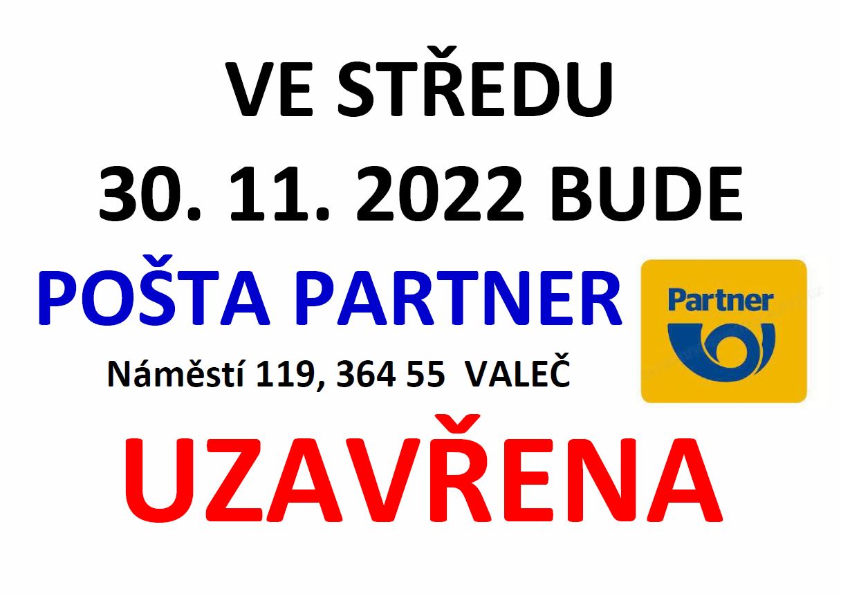 Ve středu 30.11.2022 bude pošta ve Valči uzavřena.
