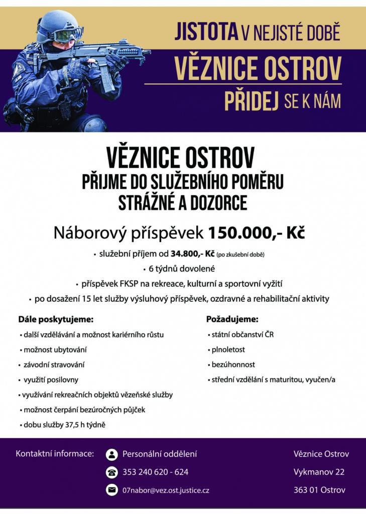 Volné místo ve služebním poměru na pozice strážný/dozorce do Věznice Ostrov